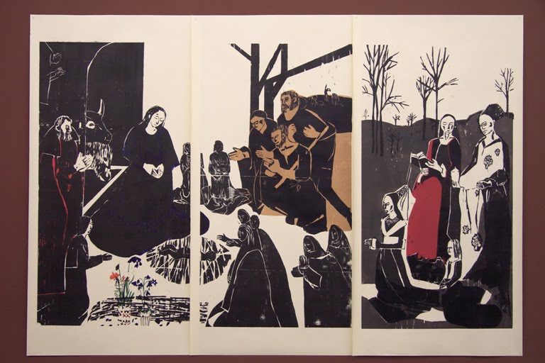 I came across this work by Adnrea Büettner via Aesthetica Magazine. I was immediately engrossed by it. The graphic woodcut style, not to mention religious subject matter, echoes classic Catholic Iconography.